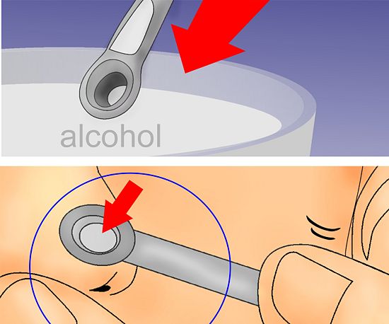 6. เมื่อหัวสิวออกแล้วนำไปล้างในแอลกอฮอล์อีกครั้งเพื่อความสะอาดไม่ให้สิวลุกลาม และนำมากดสิวจุดต่อไปจนกว่าจะหมด
